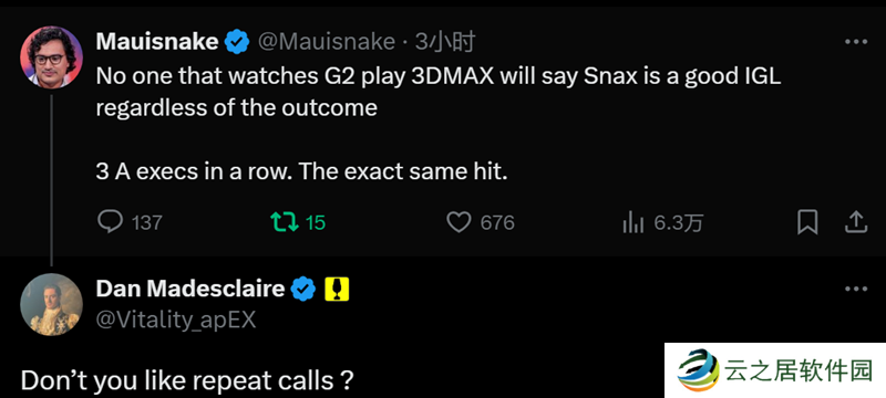 在今天下午进行的上海Major正赛阶段比赛中,G2战队击败3DMAX。赛后评论员Mauisnake认为这场比赛暴露出Snax指挥欠佳。
