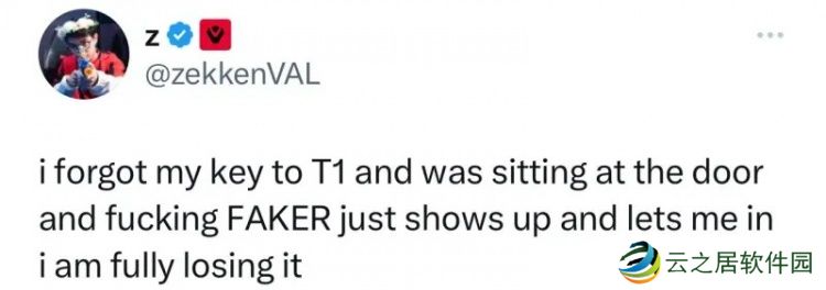zeklen:我忘带去T1那边的钥匙然后就坐在门口,然后Faker出来让我进去,我完全疯了。