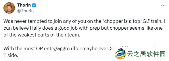“我从未赞同过你们所说的‘chopper是顶级指挥’的说法,我相信hally的准备工作做得很好,但chopper似乎是他们队伍中最薄弱的一环。