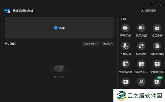这是一款电脑端的剪辑软件,打开软件,进入首页,我们可以看到右侧的工具栏具有十分丰富的功能选项。比如视频合并、视频去水印、视频模版等等,可以满足你的一些视频编辑需要。剪辑视频的话,我们直接点击新建。即可进入到视频剪辑的页面。导入几段视频,拖动到时间轴上。借助左侧的工具栏进行编辑操作即可。