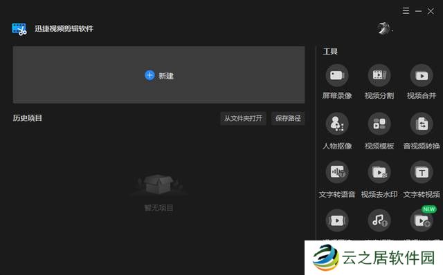 这款软件与第一款软件相比,它的功能更为丰富。打开软件可以看到软件的右侧有着十分丰富的与视频剪辑相关的功能操作,除此之外,我们还可以直接新建项目,导入视频文件,对视频进行剪辑。内设文字、特效、转场、滤镜、贴纸、配乐等视频剪辑的操作,并且操作步骤较为简单。