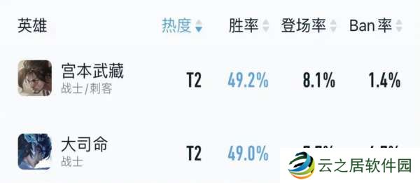 比如大司命和宫本武藏近期巅峰赛胜率只有49%左右,上赛季还是非BAN必抢的大司命,如今禁用率仅剩下4.7%。