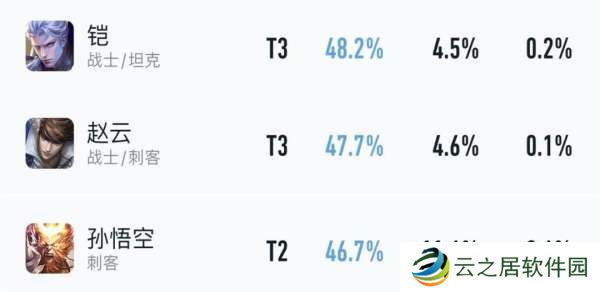 第三和第四梯队都是机制比较落后的老英雄,其中人气比较高的孙悟空、赵云和铠,本赛季巅峰赛胜率都已经跌到谷底。