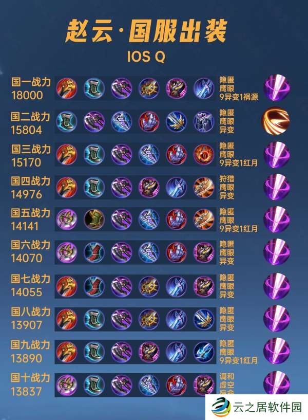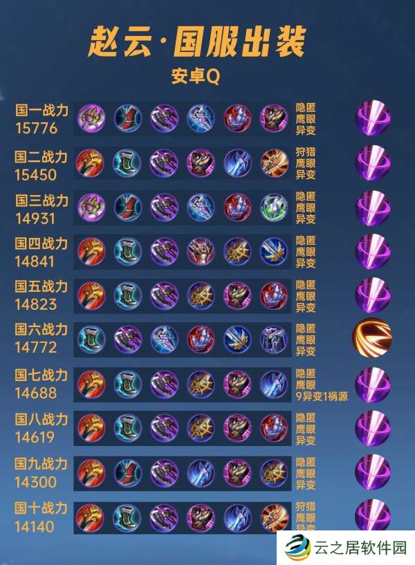 这篇文章我们来看一下40位国服赵云的出装铭文,没有想到一个这么冷门的英雄,出装这么杂乱,基本上每个人一个路子。