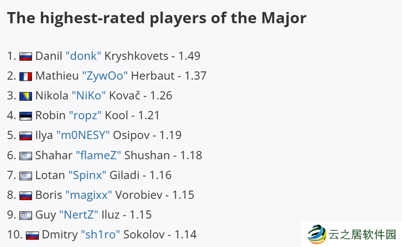 随着上海Major以Spirit夺冠而落下帷幕,本次赛事参赛选手的Rating排行榜也新鲜出炉。