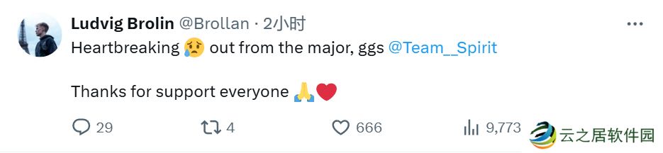 Brollan:令人心碎,从Major出局了,GG Spirit,谢谢大家的支持。