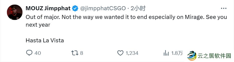 Jimpphat:Major出局了,这不是我们想要的结局,尤其是在Mirage上。明年再见了!