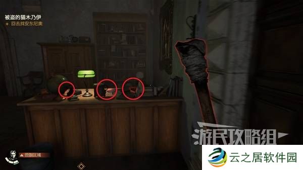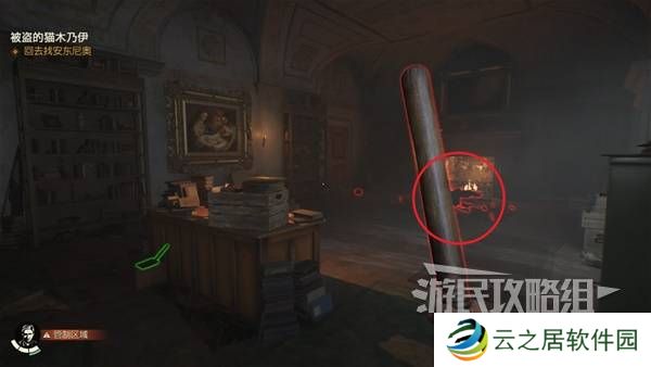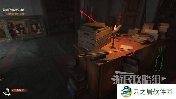 入口处的桌子上可以拿到谜题笔记【罗素的笔记】,开启谜团【血之公牛】,随后往房间左边走到尽头。