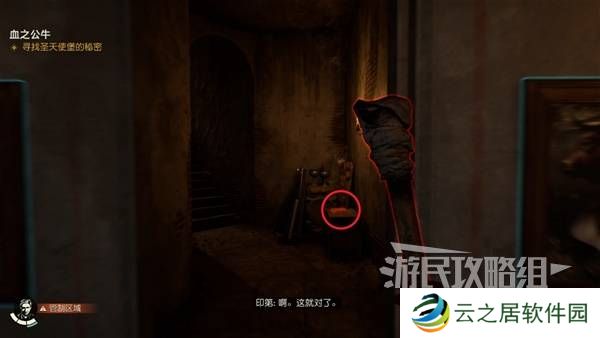 暗道入口不远处可以拿到谜题笔记【凯撒·波吉亚的来信】完成谜团血之公牛,继续沿着楼梯走,与墙上的机关互动可以开启隐藏门。
