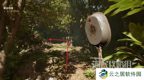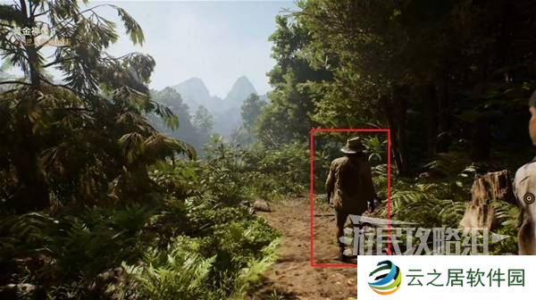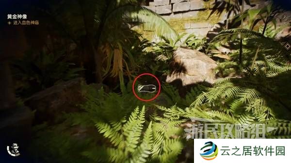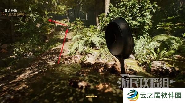 在不远处可以看到道路前方被藤蔓挡住去路,与藤蔓前面的白点互动触发剧情动画,打开藤蔓后有一个小高能。