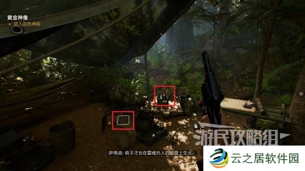 营地的背包上有一个可以拿的书籍【云端战士】,前面的平底锅可以捡起来当临时武器,但周围没有敌人,可以不用管。