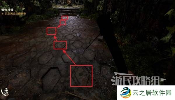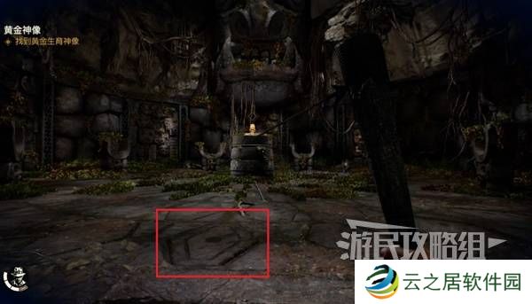 来到黄金神像所在的房间,前方石砖有机关,不要直接走过去。
