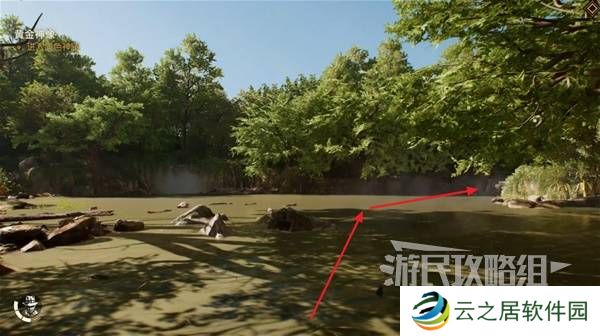 直走到尽头,看到一棵树可以互动,能触发一段剧情动画,在尽头处往左走抬起一个倒下的树干,来到一片池塘处。