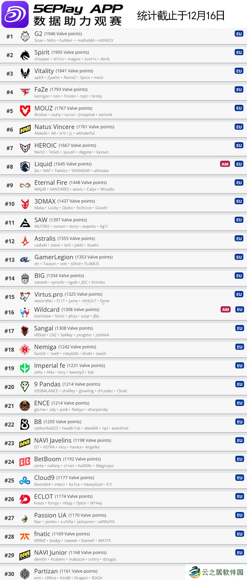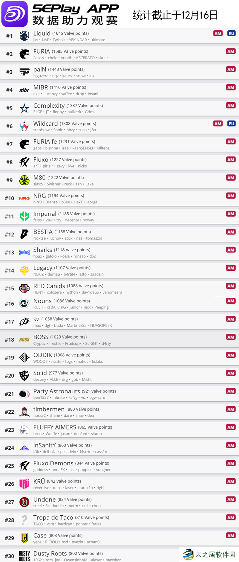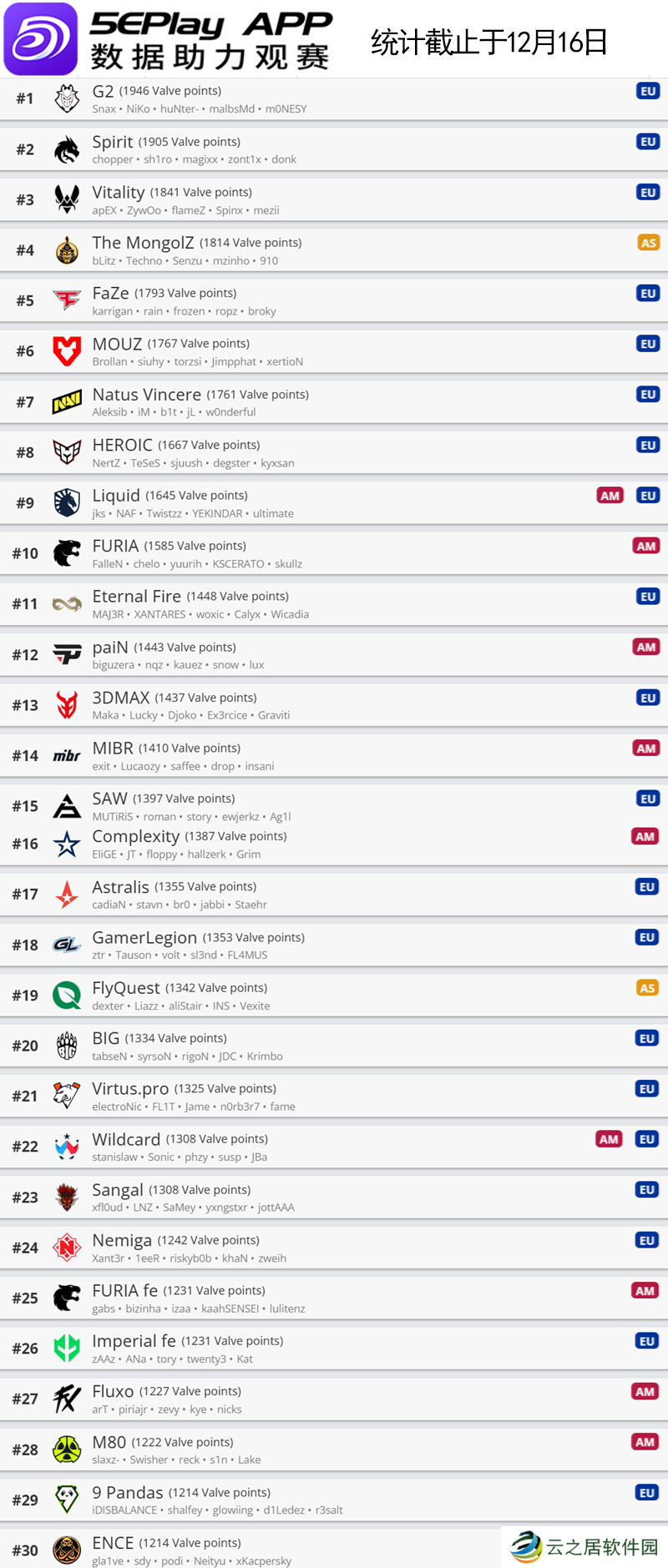 今天V社更新了旗下CS世界排名,这一世界排名会和明年的赛事邀请紧密联系,因此是主办方和战队都必须关注的内容。