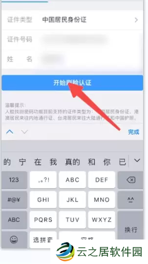 2、跳转页面输入相关信息后点击开始刷脸认证,这里认证声音以及面部特征,所以最好找一个安静一点的位置。