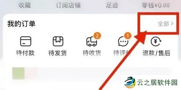 1、打开淘宝,点击我的淘宝,点击我的订单右侧的全部。