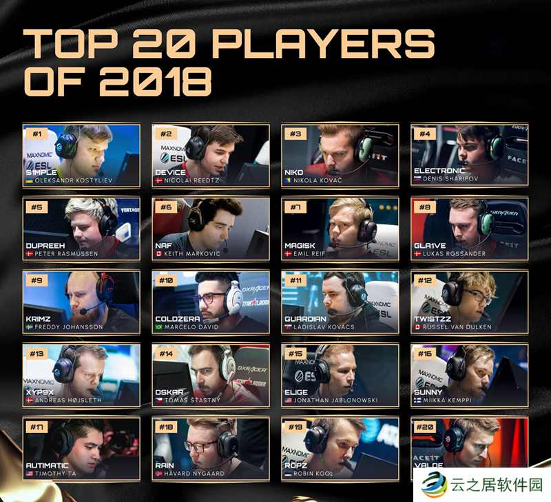 2018年HLTV年度最佳选手TOP20名单如下: