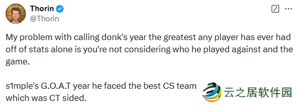 Thorin:donk还称不上GOAT,s1mple当年面对的是巅峰A队