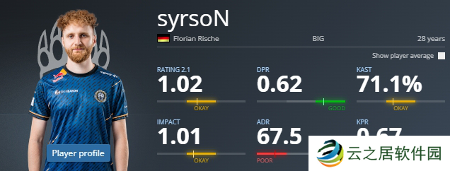 这位28岁的选手曾在2020年1月至2023年8月期间效力于BIG战队,在他第二次为BIG效力期间,其线下赛事平均rating为1.02。