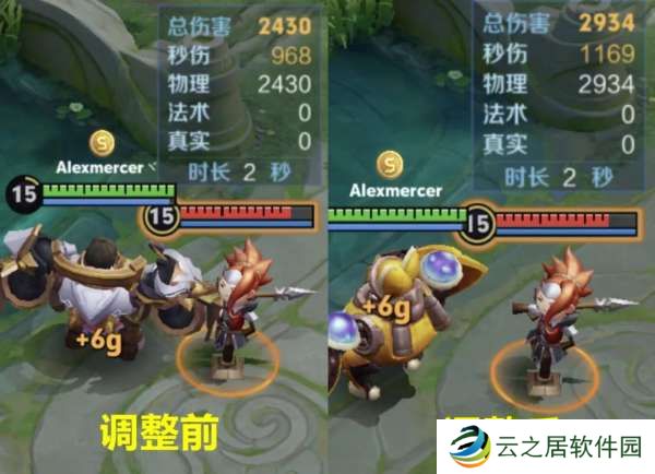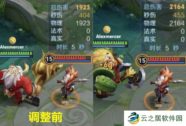 以满级全肉出装进行测试,大招击飞+5秒裂缝持续伤害,调整前1923点伤害,调整后2164点伤害。