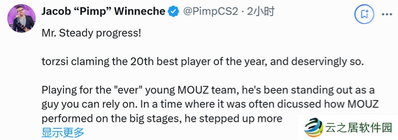 Banks:torzsi在助力MOUZ战队2024年取得成功的过程中发挥了重要作用,他的高光表现令人印象深刻,获此殊荣当之无愧!