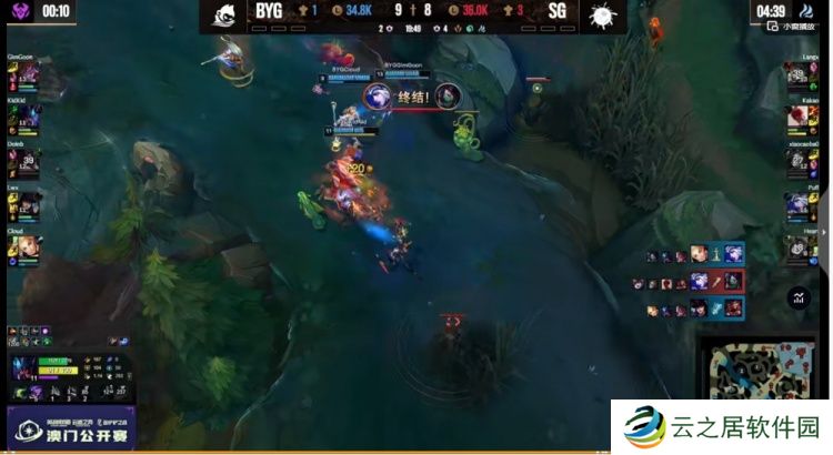【25:10】风龙魂刷新,GimGoon阿萝拉罩大四个但是没人能跟伤害,Kakao盲僧单防Doinb阿卡丽将他单切,Langx纳尔TP回到正面战场,配合Puff艾希追击,SG最终打出1换4!SG拿下风龙魂之后抱团开大龙,BYG三人依靠阿萝拉大招强行和对手打了个2换2!但是大龙还是被SG拿下!