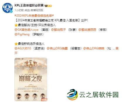 1.年度最佳解说/主持/评论员候选人入围规则:在2024年度王者荣耀职业赛事中均有参加工作的正式签约解说,参考KPL官方解说全年工作表现综合分数排名,前四名入选;