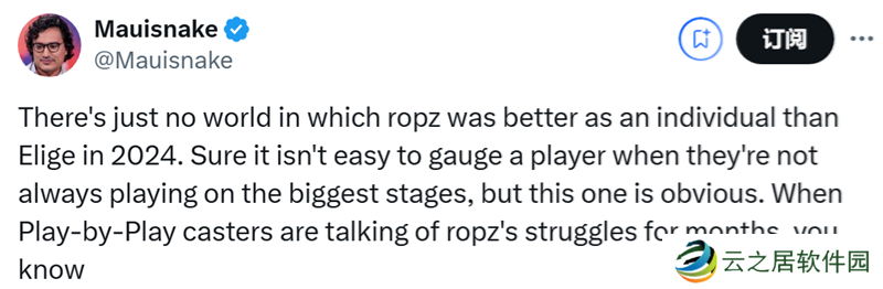Mauisnake:在2024年,从个人表现来讲,ropz绝不可能比EliGE更出色。当一名选手并非总在顶级舞台上比赛时,衡量其表现并非易事,但这次情况很明显。当赛事解说员都连着几个月在谈论ropz的困境时,你就懂(差距了)。