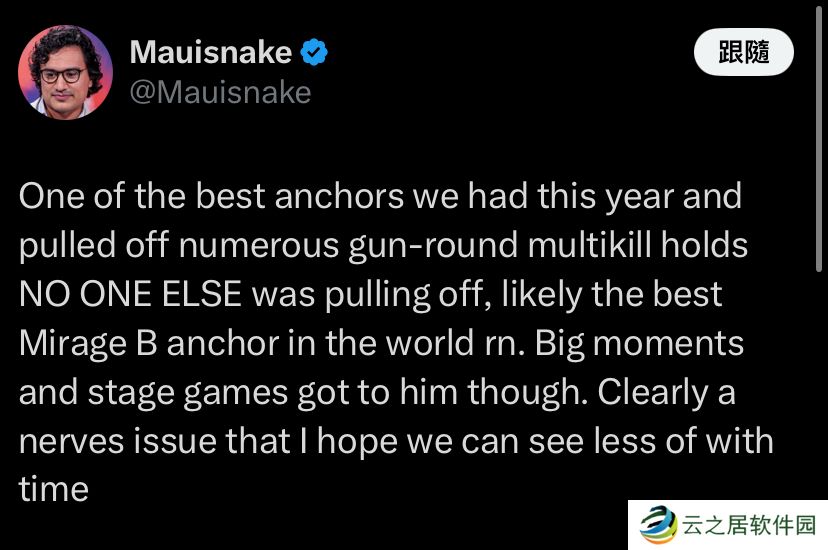 Mauisnake:Jimpphat是今年最优秀的主防者之一,成功完成了多次难以复制的多杀场面,他可能是目前最优秀的Mirage B区主防者。然而,在关键时刻和场馆比赛中,他显得有些紧张。希望随着时间的推移我们能看到他对此有所改善。