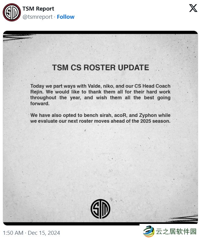 TSM正在与多个北美战队和选手讨论,计划在2025年签约一支北美CS2战队。