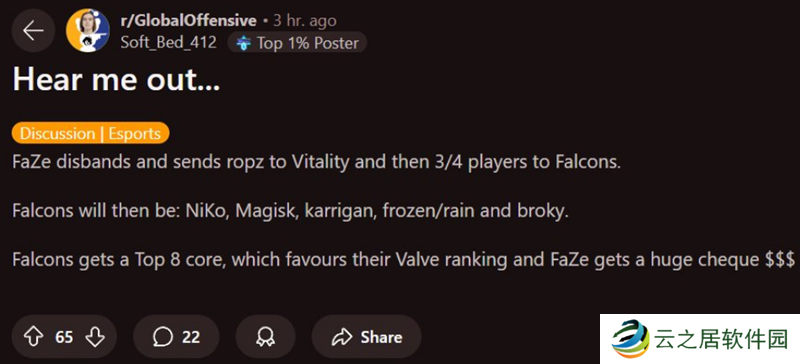 Falcons可以拿到Top8核心阵容,这有助于他们的V社排名,而FaZe可以得到一大笔钱。”
