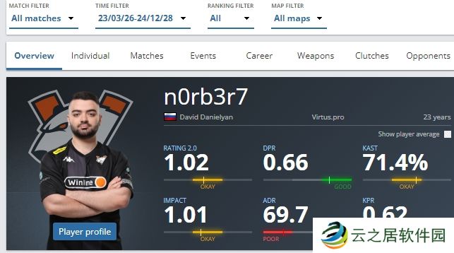 在艰难的主点人角色中,n0rb3r7在与VP阵容合作期间,平均rating为1.02,并在之前提到的IEM 里约Major以及ESL 挑战者 亚特兰大站中获得第一名。