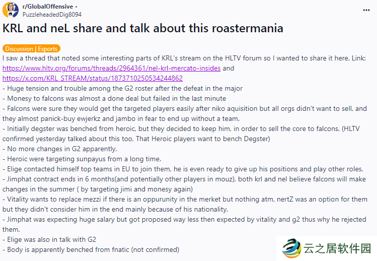 以上消息源于KRL与neL的直播,由HLTV和reddit论坛网友整理汇总,并非由爆料人书面形式爆料。真实性上有待商榷,只算是提供了转会期的一些更多细节,仅供读者分析。
