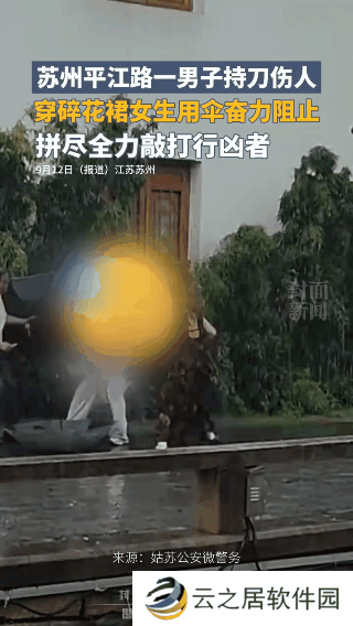 今年9月11日,江苏苏州市平江路发生一起持刀伤人事件,女孩刘杨奋力用雨伞打掉行凶者手上的刀,成功制止其继续行凶。