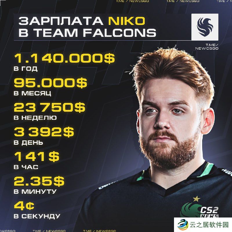 Falcons的月薪,可能高达9.5万美元。如果消息属实,那么NiKo的年收入将高达114万美元。