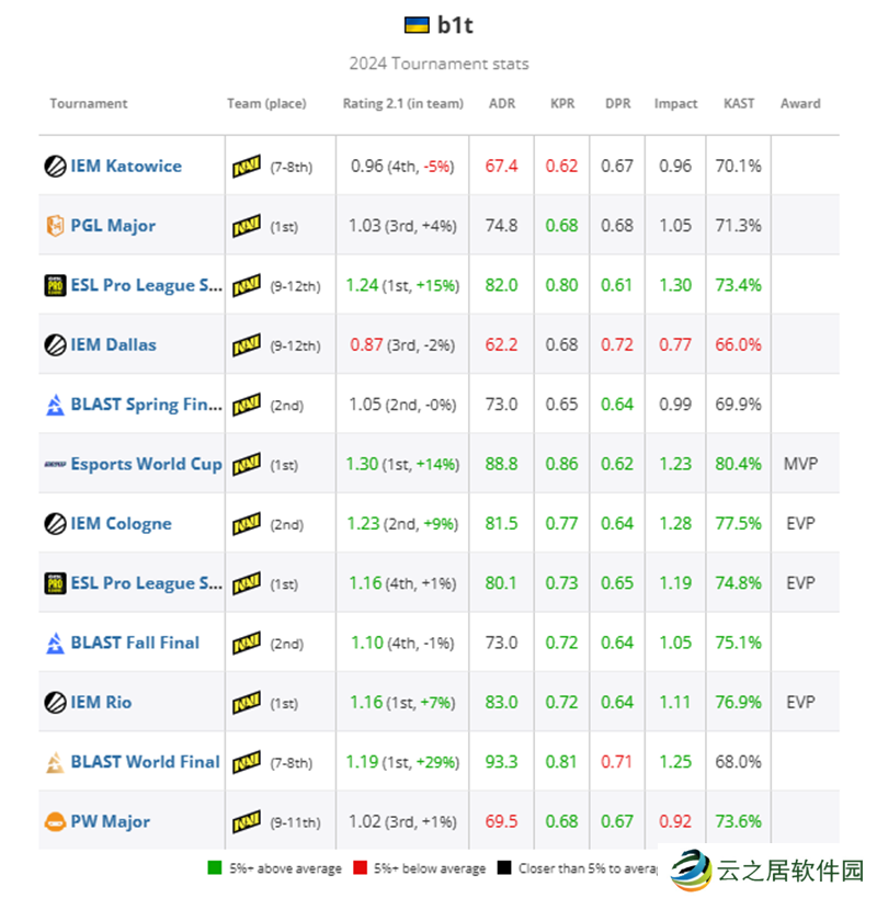 Natus Vincere在 2022年仅赢得了一项赛事——BLAST春季总决赛,但在Boombl4离队前,他们依然表现出色,分别在PGL 安特卫普 Major和IEM科隆站中获得亚军。而b1t在这几项赛事中均获得了 EVP。