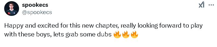OG战队在社交平台官推中宣布spooke正式加入战队。
