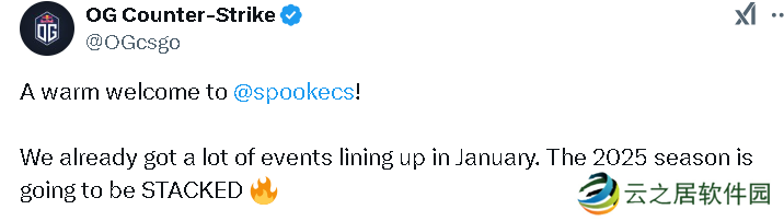 “热烈欢迎spooke!我们在一月份已经安排了许多活动。2025赛季将会非常精彩。”