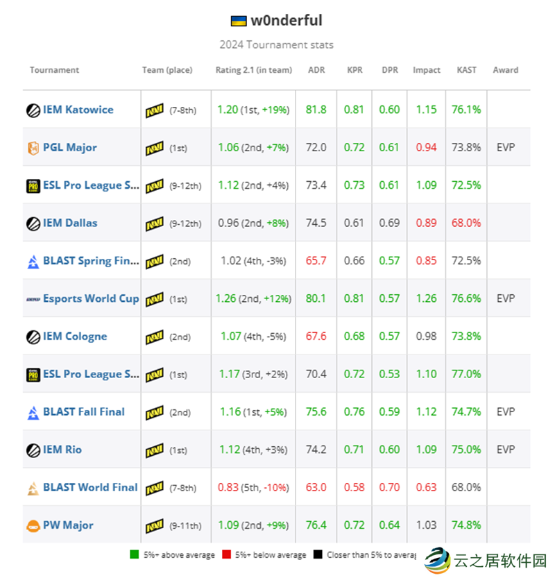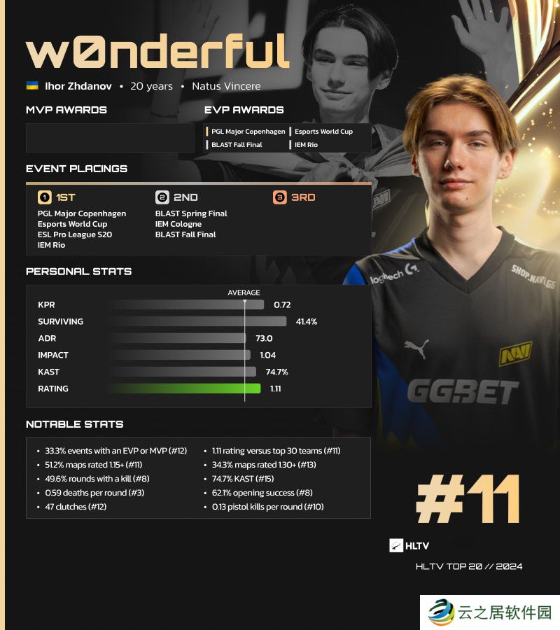 w0nderful在Natus Vincere令人印象深刻的2024年中获得四项EVP,首次跻身TOP20选手榜单。