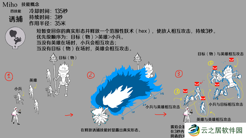 四技能“诱捕”不仅会灼烧敌人,使其损失最大生命值的10%,还会迫使敌人在短时间内自相残杀。这个技能在团战中能充分发挥其潜力,因为每一秒的情况变化都可能导致己方队伍团灭或是敌方队伍被灭。