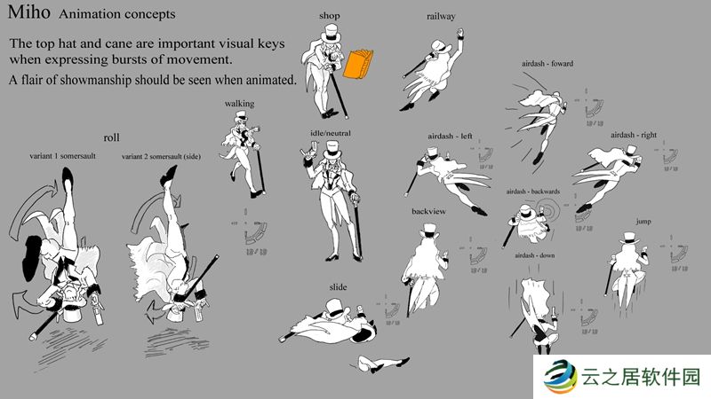 手杖和高顶礼帽可以作为强调移动爆发的很好方式。