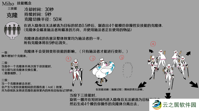 三技能“克隆”是一个绝佳的逃生工具,还可用于多种不同情况,比如应对半血小兵、扩大技能范围或物品作用范围,并且如果位置摆放精准的话,还能造成高额伤害(此处“nuking”原意为用***攻击,游戏语境中常指造成高额伤害)。