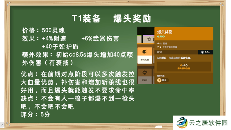 用打分形式做的装备介绍可以简单明了的帮助新人了解死锁的装备系统。