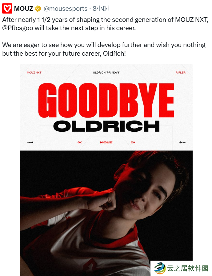 “在近一年半的时间里塑造了第二代MOUZ NXT战队后,PR将在其职业生涯中迈出下一步。我们热切期待看到你进一步成长,祝愿你在未来的职业生涯中一切顺利,Oldřich! ”