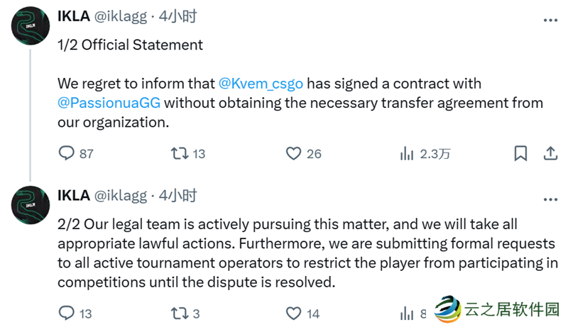 2/2 我们的法务团队正在积极处理此事,并且我们将采取一切恰当的合法行动。此外,我们正向所有正在举办赛事的主办方提交正式请求,要求在争议解决之前限制该选手参赛。 ”