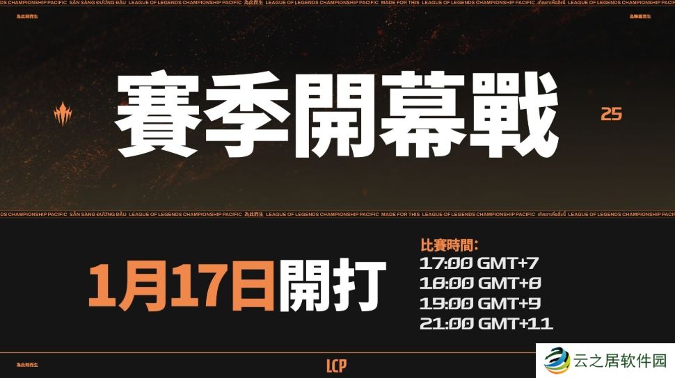 赛季开幕战将于1月17日(五)开打,并持续至2月23日(日),赛事将于比赛日的下列时段开打:17:00 GMT+7 // 18:00 GMT+8 // 19:00 GMT+9 // 21:00 GMT+11。