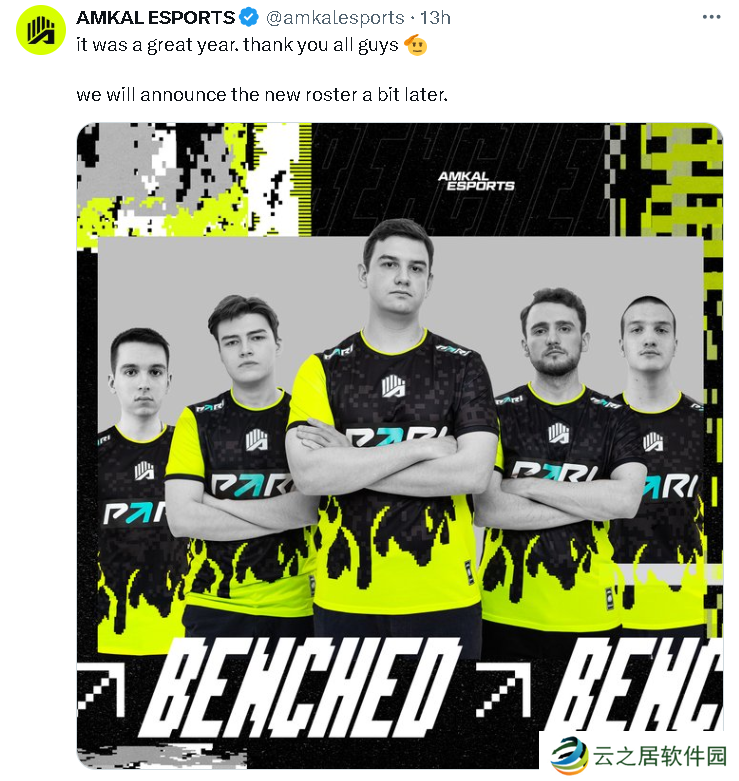 AMKAL战队在社交平台官推上宣布下放队内所有选手至替补席。