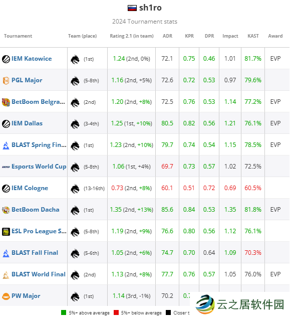 sh1ro的表现稳定,但他的大部分数据来自对阵较低排名的对手,并且在淘汰赛bo3的首张地图中表现平淡,这再次使他错失了EVP奖项,尽管他在赛事中的rating为1.19。