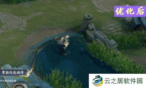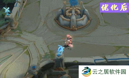 优化后的真我赫兹,离开泉水会有一个表演特效,瑶会召唤出一个粉红色的小舞台出来,然后她站在台上打碟,粉红鹿则环绕着舞台奔跑,直接把在线打碟具现化了,这个特效首次离开泉水持续10秒,后面每次离开泉水持续5秒。