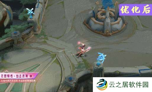最后是1技能新增的随机特效,原来1技能只有一个特效,炫光灯球直直的平行飞出去,优化后会多一个炫光灯球从飞出去变成弹跳出去的特效,这里有点和行走的蹦蹦跳跳相呼应的感觉,一个6个特效的大变,直接让瑶赢麻了。